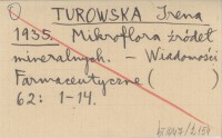 TUROWSKA Irena 1935 Mikroflora źródeł mineralnych.