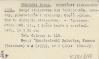 TUROWSKA Irena OLESIŃSKI, Aleksander. ; 1951 Zarys zielarstwa dla farmaceutów, lekarzy, plantatorów i zielarzy. Część ogólna. Tom I. Historia zielarstwa.