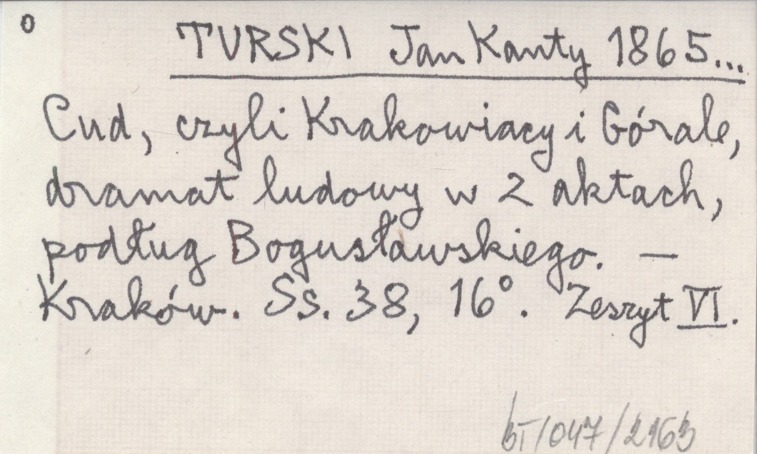 TURSKI Jan Kanty 1865... Cud, czyli Krakowiacy i Górale, dramat ludowy w 2 aktach, podług Bogusławskiego.