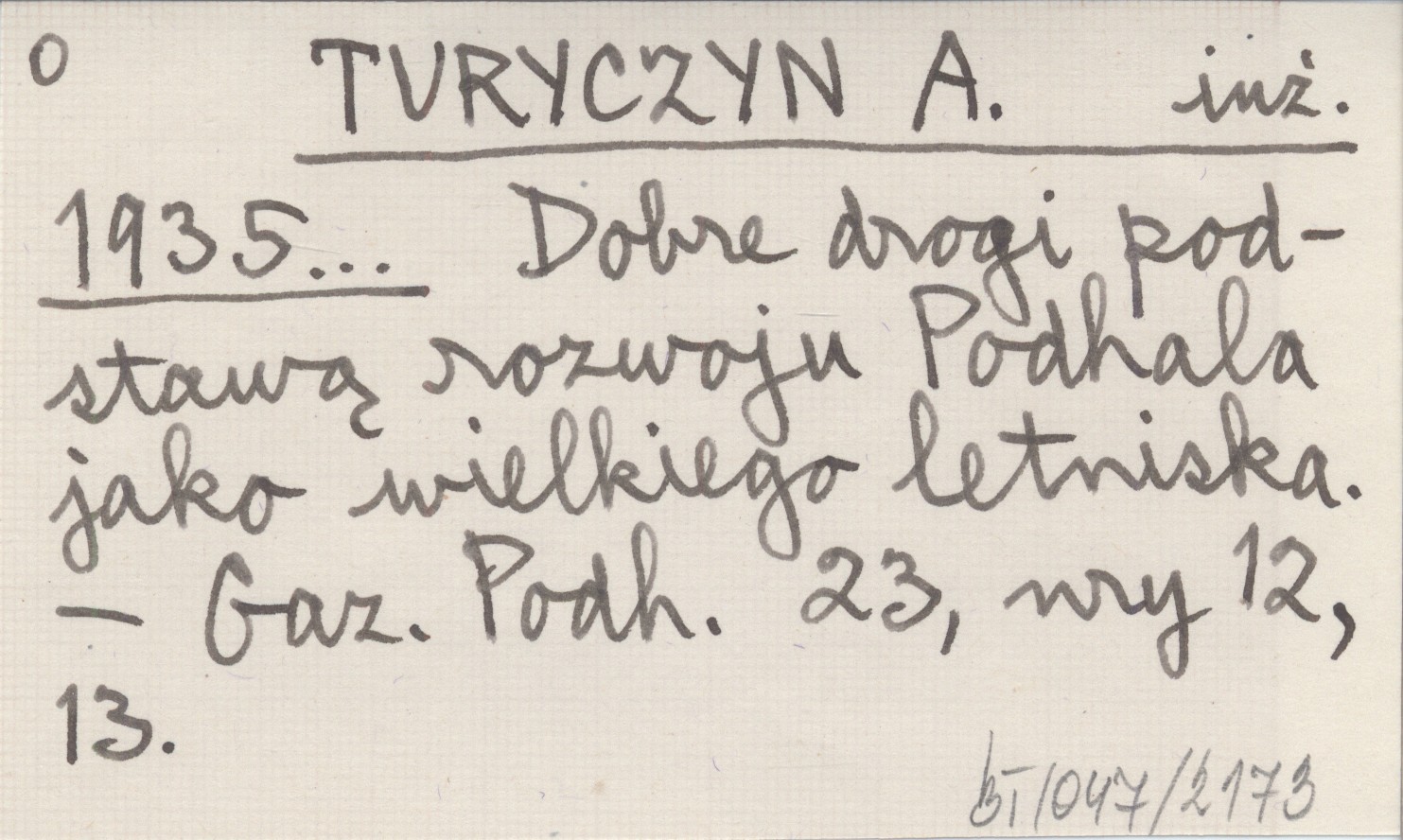 TURYCZYN A. inż. 1935... Dobre drogi podstawą rozwoju Podhala jako wielkiego letniska.