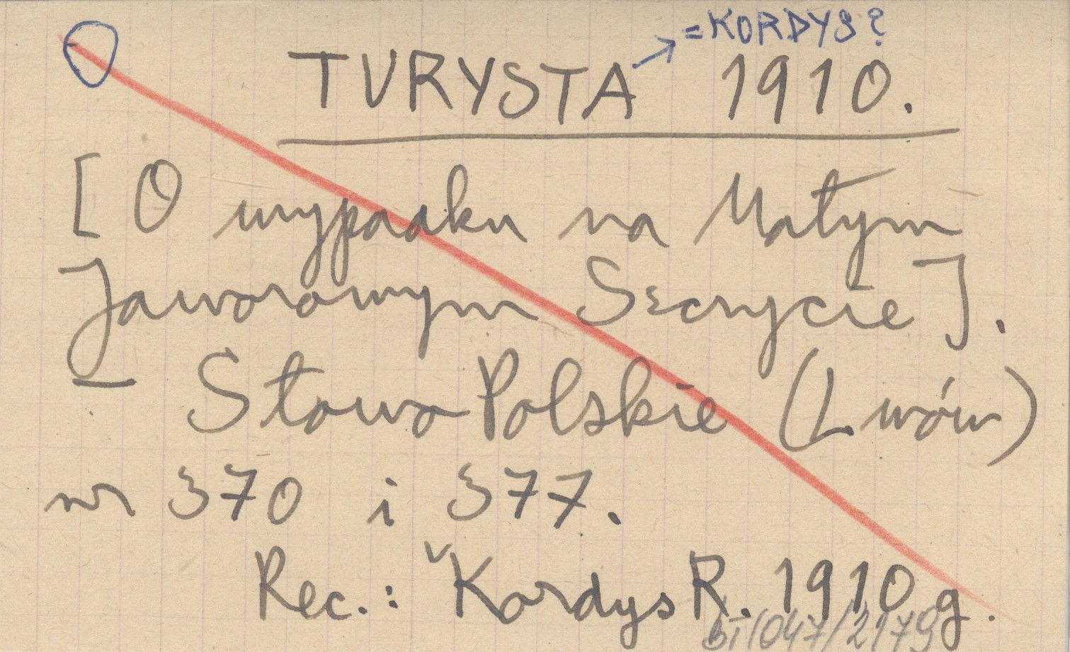 TURYSTA 1910 [O wypadku na Małym Jaworowym Szczycie].