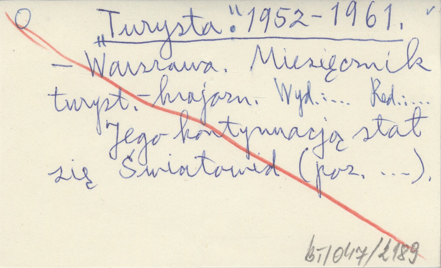 Turysta (Warszawa) , 1952-1961. Miesięcznik turyst.-krajozn. Jego kontynuacją stał się Światowid.