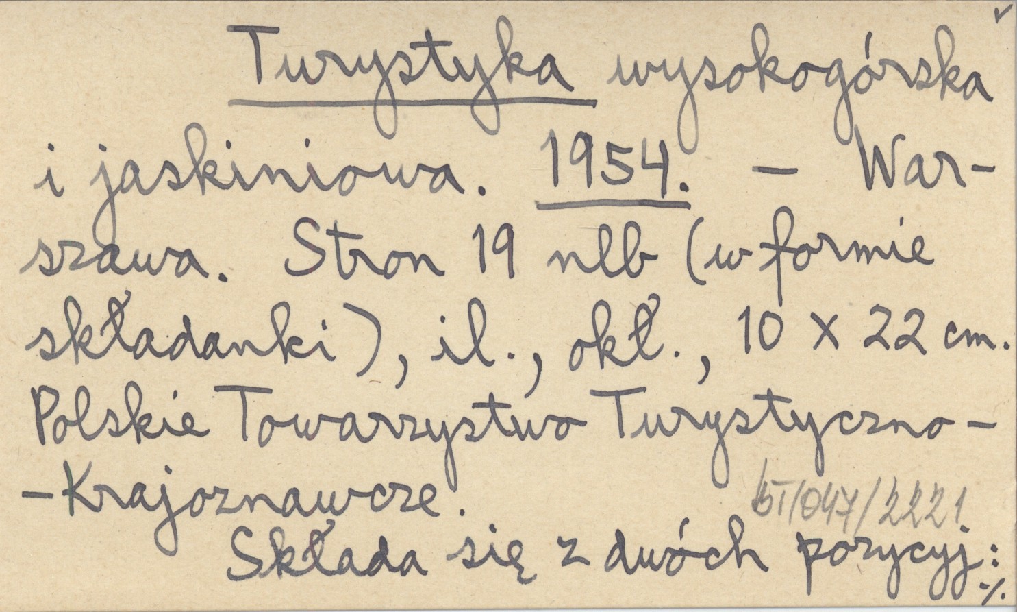 Warszawa , [19] s. (w formie składanki), il., okł., 10x22 cm. Polskie Towarzystwo Turystyczno-Krajoznawcze. Składa się z dwóch pozycji: Dobrowolski A. 1954, Kowalski K. 1954.