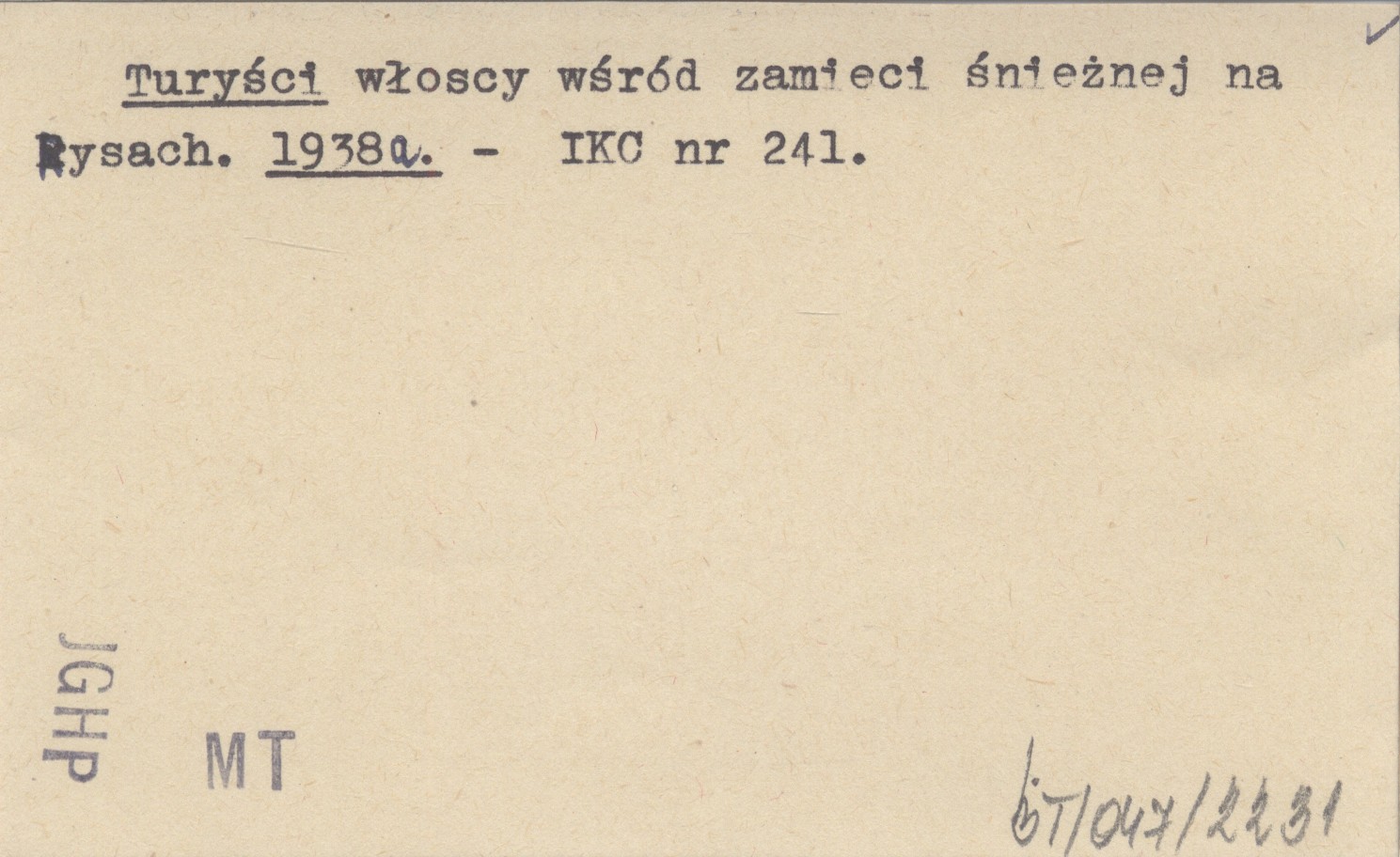 Turyści włoscy wśród zamieci śnieżnej na Rysach. 1938 a