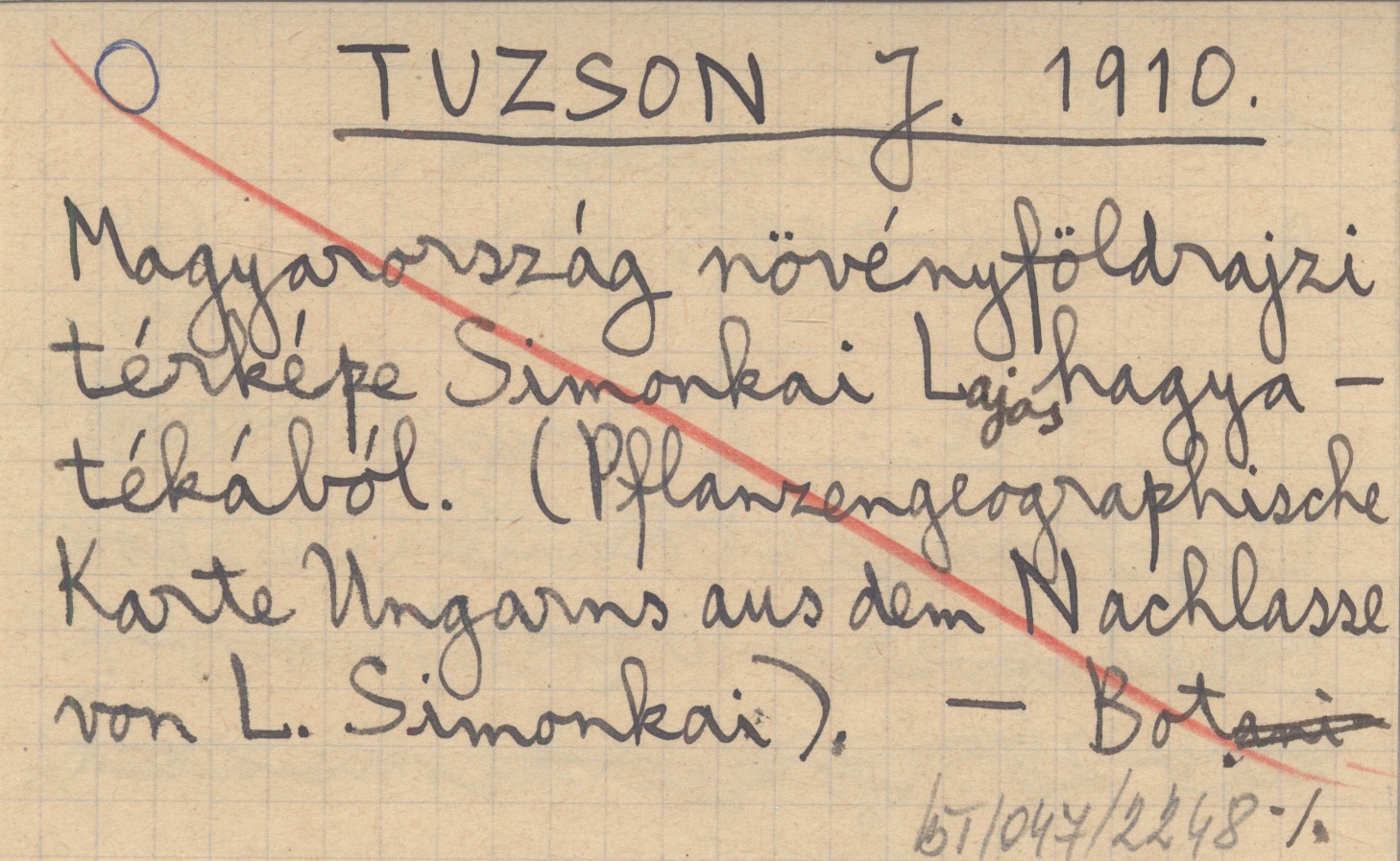 TUZSON J. 1910 Magyarország növényföldrajzi térképe Simonkai Lajos hagyatékából. (Pflanzengeographische Karte Ungarns aus dem Nachlasse von L. Simonkai).