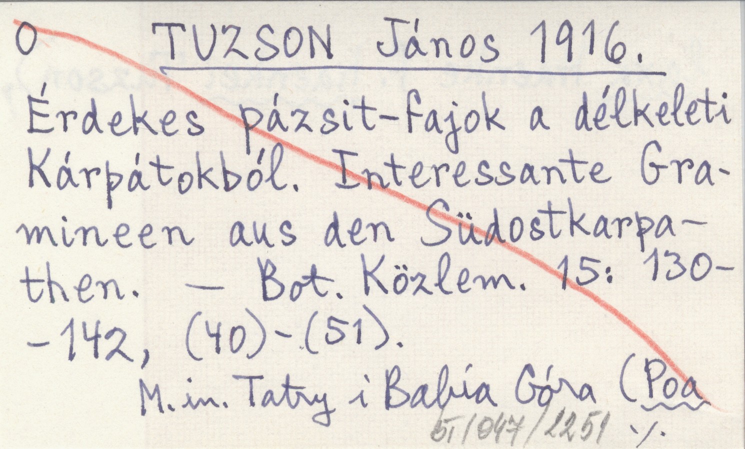 TUZSON János 1916 Érdekes pázsit-fajok a délkeleti Kárpátokból. Interessante Gramineen aus den Südostkarpathen.