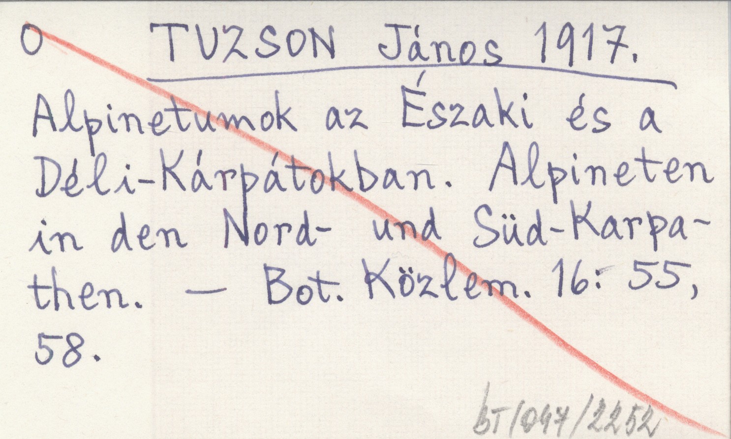 TUZSON János 1917 Alpinetumok az Északi és a Déli-Kárpátokban. Alpineten in den Nord- und Süd-Karpathen.