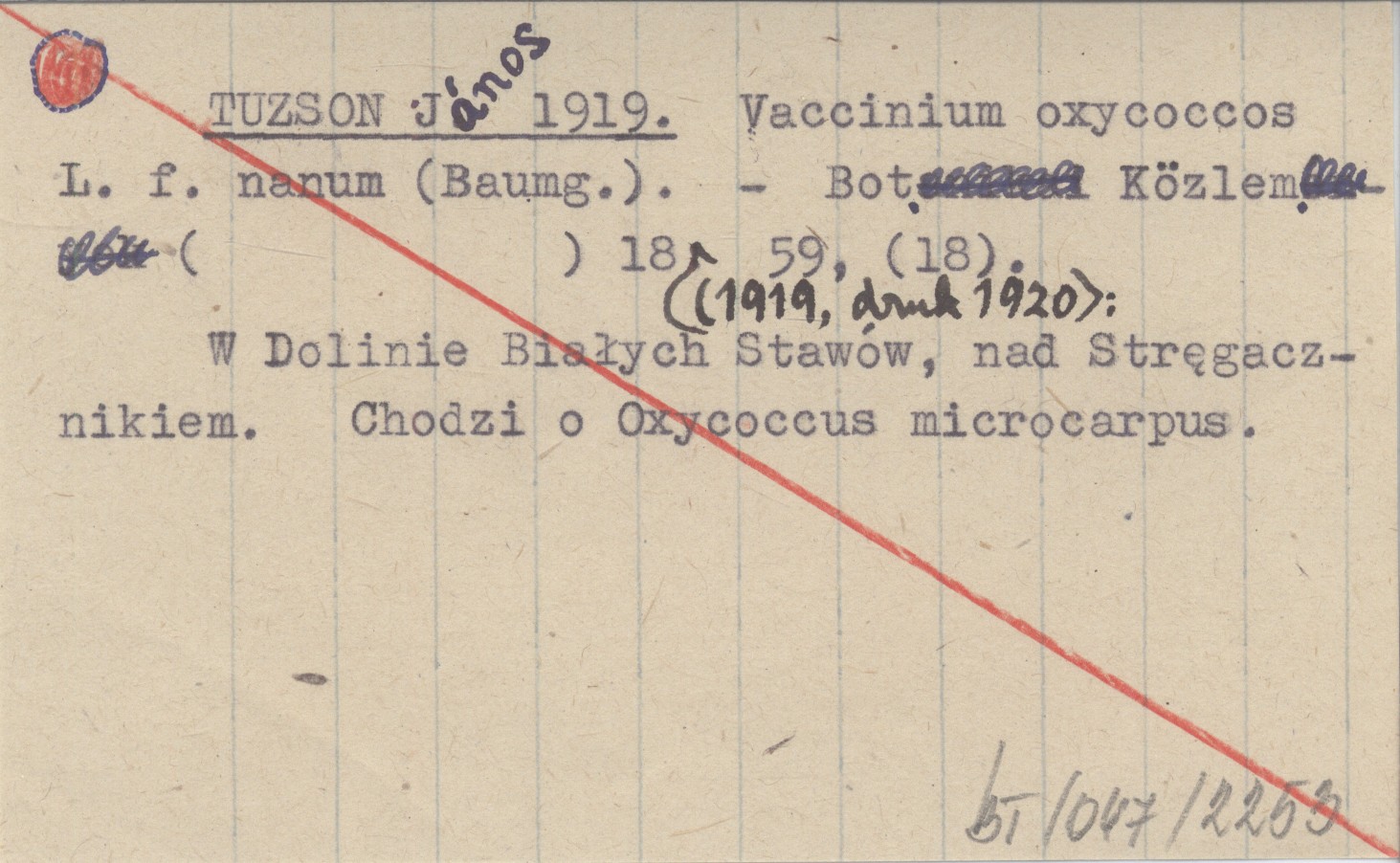 TUZSON János 1919 Vaccinium oxycoccos L. f. nanum (Baumg.).