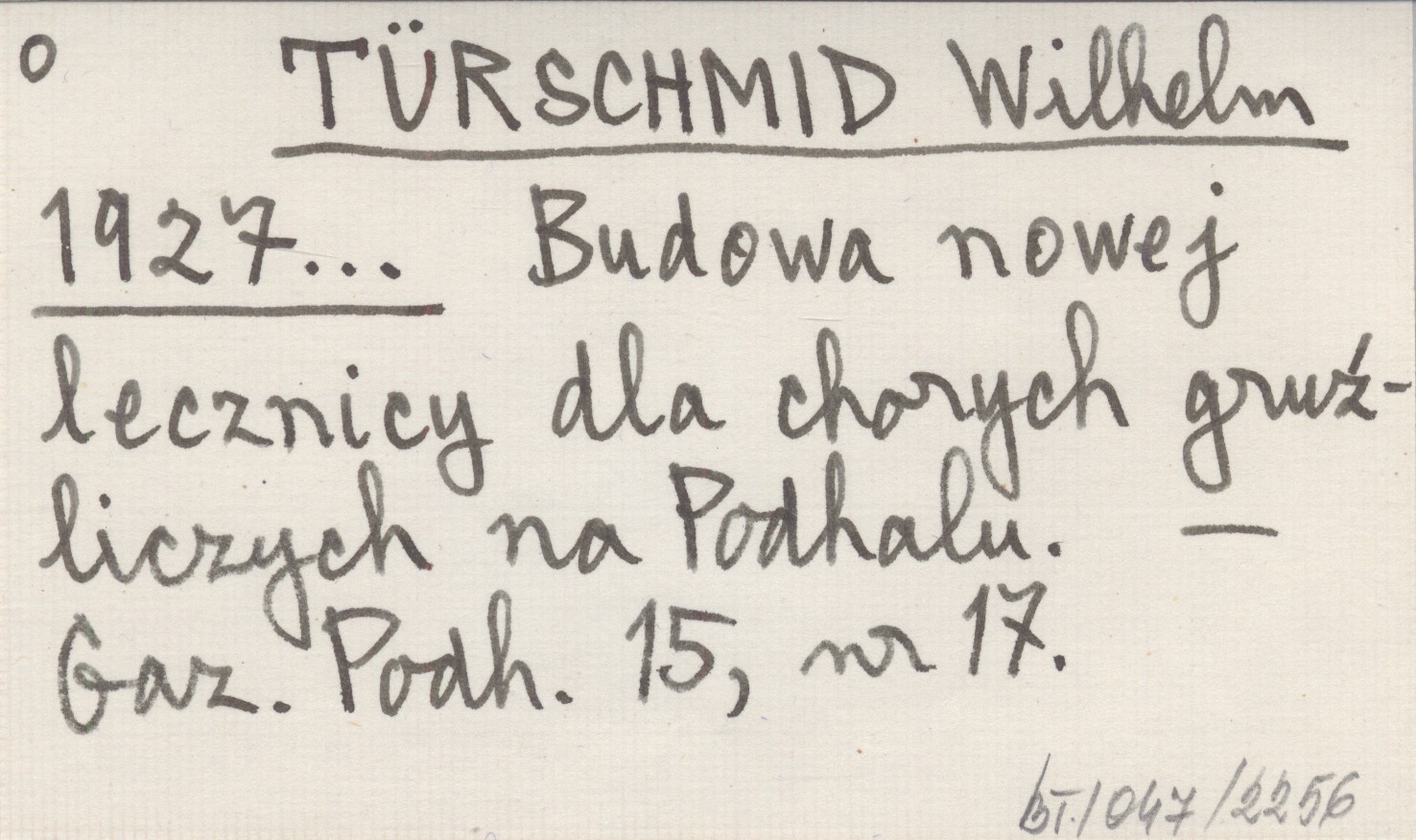 TÜRSCHMID Wilhelm 1927... Budowa nowej lecznicy dla chorych gruźliczych na Podhalu.