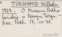 TÜRSCHMID Wilhelm 1929... O Muzeum Podhalańskie w Nowym Targu.