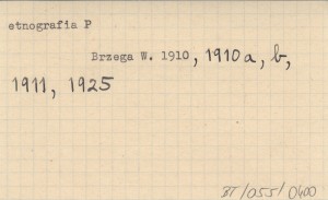 Lud, 16, nr 4: 398-408, il. Też odb.: BRZEGA W. 1911 a. Przedruk z pewnymi zmianami: BRZEGA W. 1930