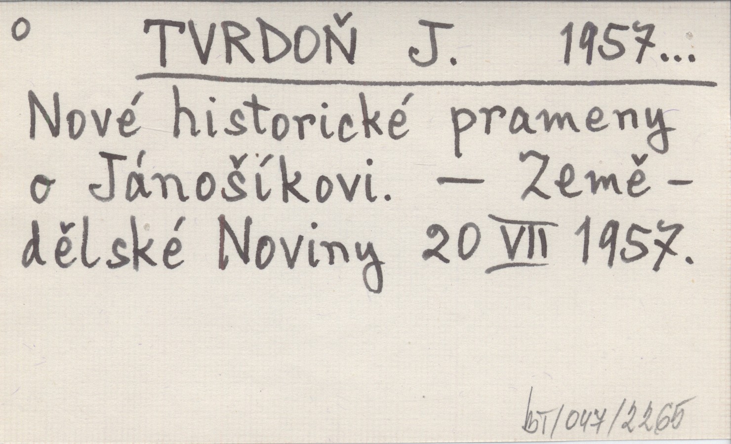 TVRDOŇ J. 1957... Nové historické prameny o Jánošíkovi.