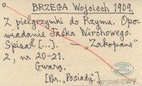 BRZEGA Wojciech 1909 Z pielgrzymki do Rzymu. Opowiadanie Jaśka Wirchowego. Spisał [...].