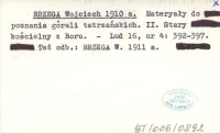 BRZEGA Wojciech 1910 a Materyały do poznania górali tatrzańskich. II. Stary kościelny z boru.