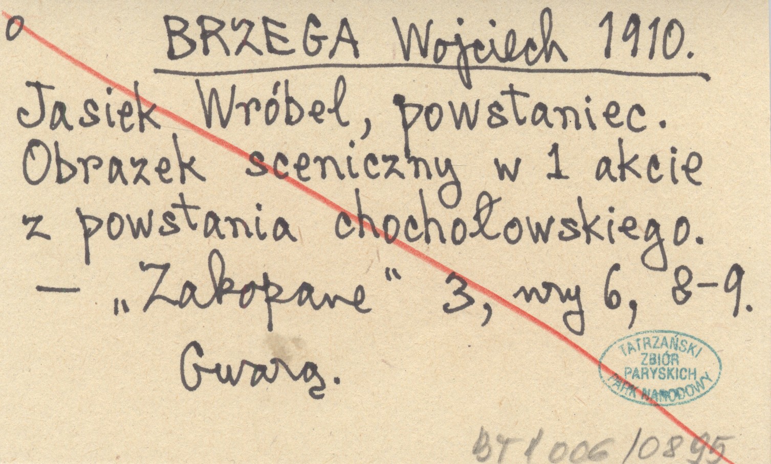 BRZEGA Wojciech 1910 Jasiek Wróbel, powstaniec. Obrazek sceniczny w 1 akcie z powstania chochołowskiego.