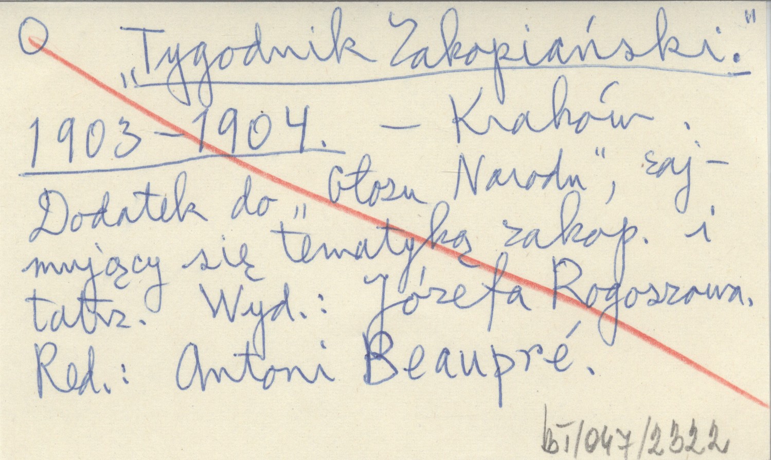 Wydawnictwo Józefa Rogoszowa, Tygodnik Zakopiański (Kraków) , 1903-1904. Dodatek do "Głosu Narodu", zajmujący się tematyką zakop. i tatrz.