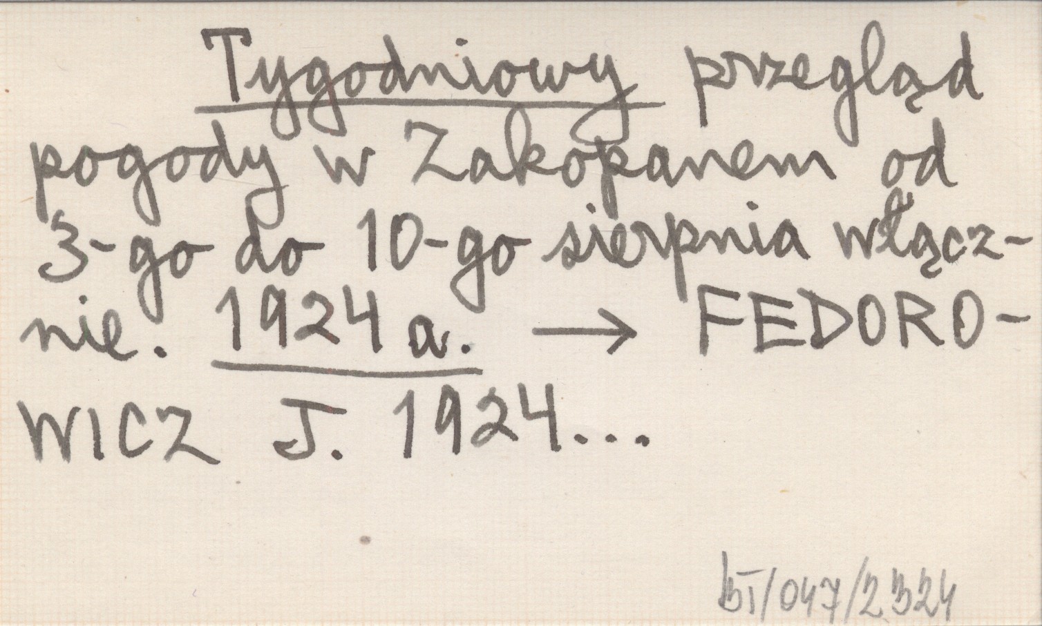 FEDOROWICZ J. 1924...