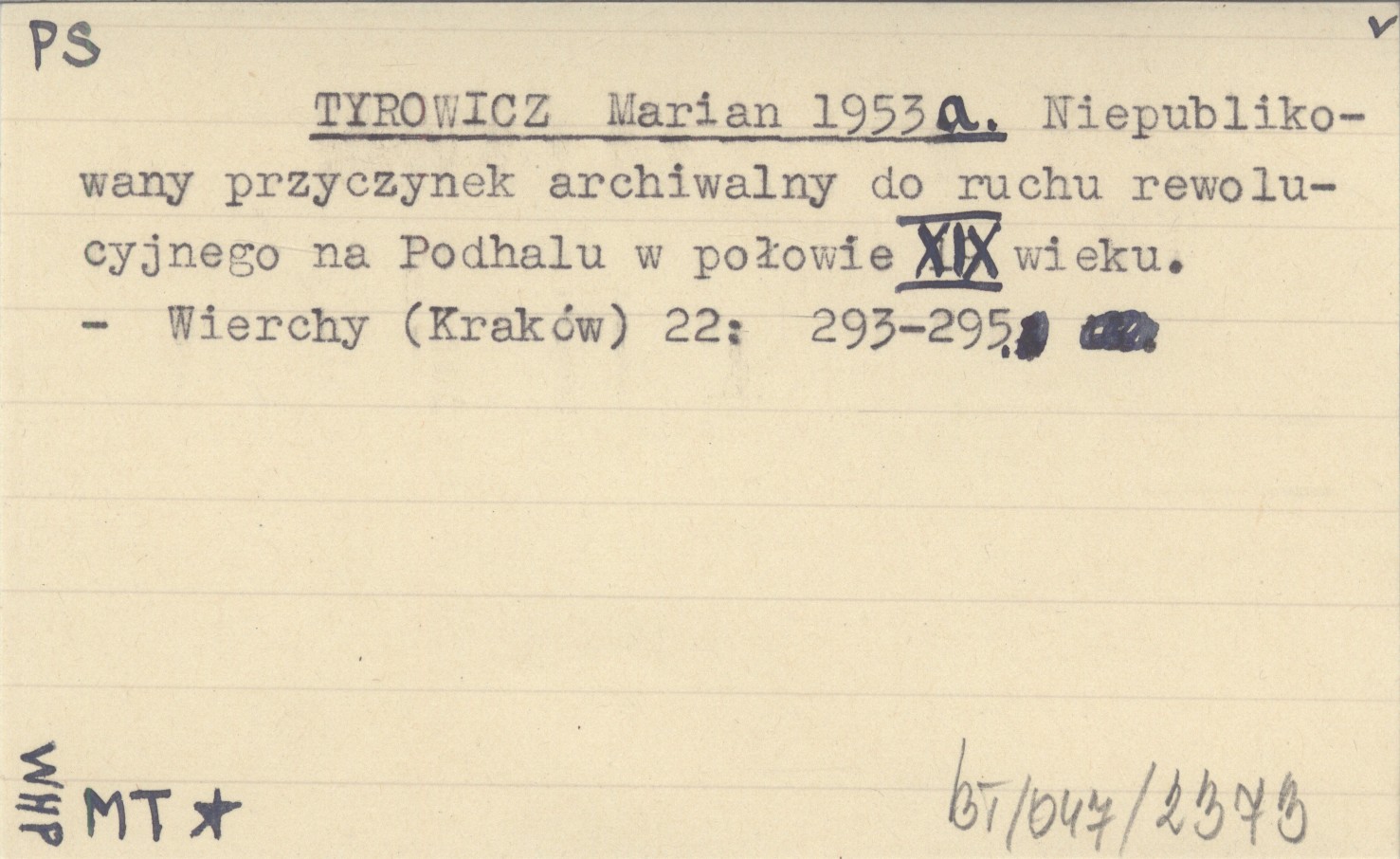 TYROWICZ Marian 1953 a Niepublikowany przyczynek archiwalny do ruchu rewolucyjnego na Podhalu w połowie XIX wieku.