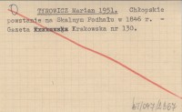 TYROWICZ Marian 1953 a Niepublikowany przyczynek archiwalny do ruchu rewolucyjnego na Podhalu w połowie XIX wieku.