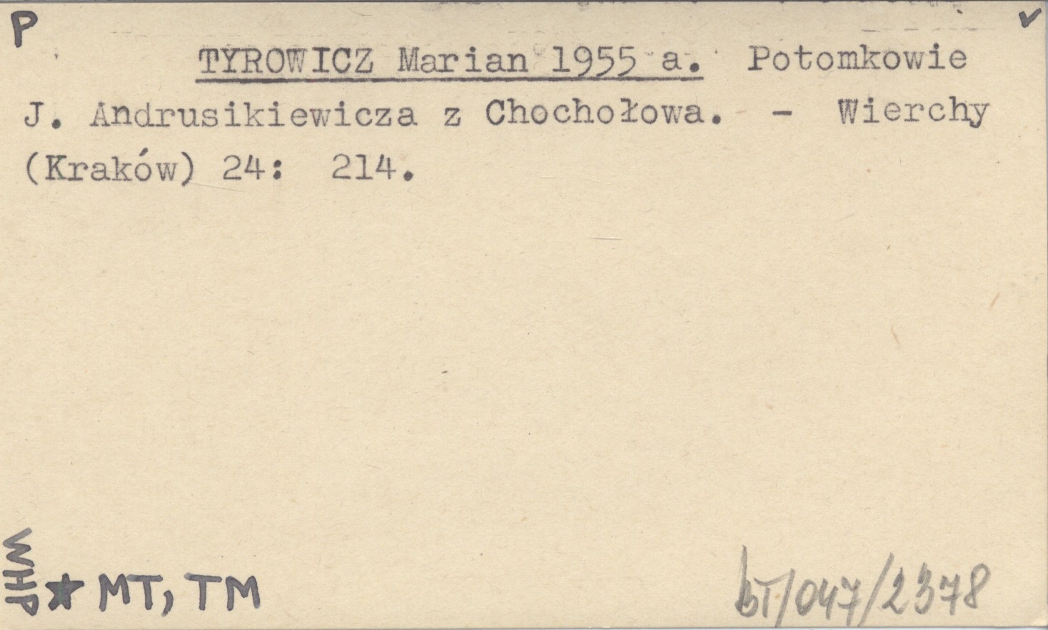 TYROWICZ Marian 1955 a Potomkowie J. Andrusikiewicza z Chochołowa.