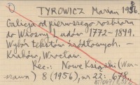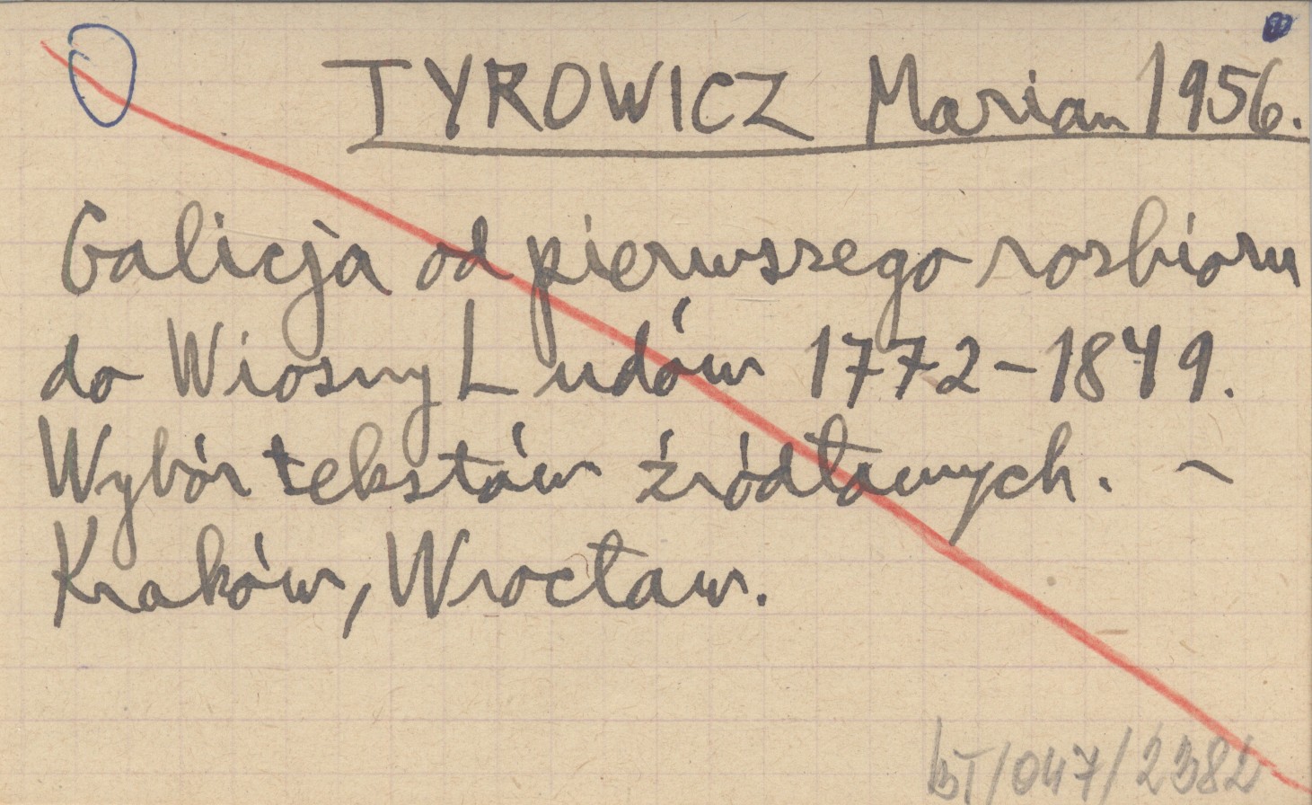 TYROWICZ Marian 1956 Galicja od pierwszego rozbioru do Wiosny Ludów 1772-1849. Wybór tekstów źródłowych.