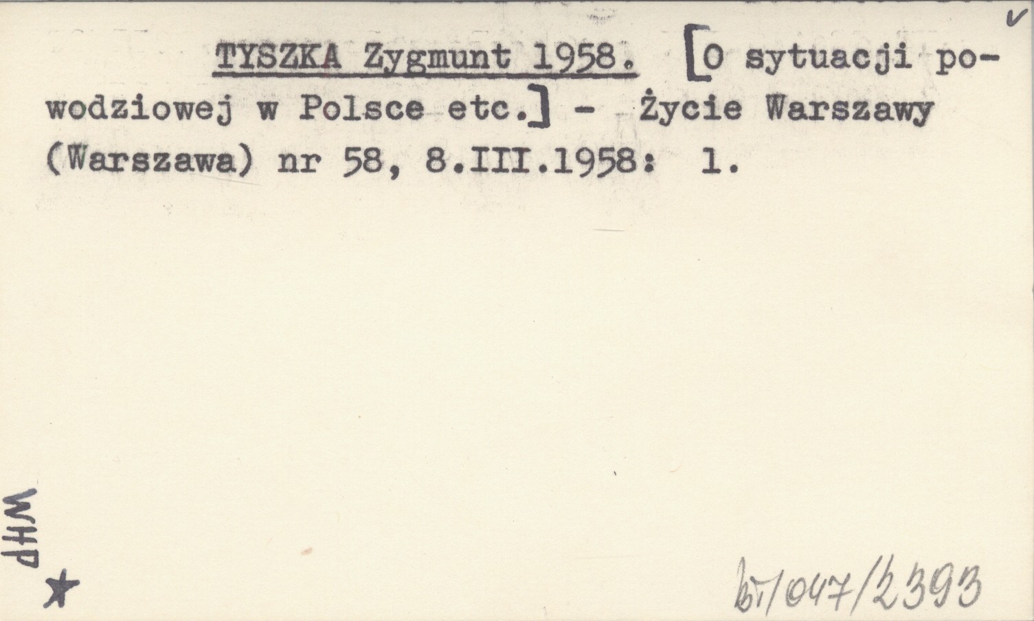 TYSZKA Zygmunt 1958 [O sytuacji powodziowej w Polsce etc.].