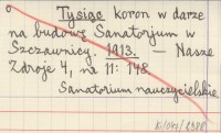Tysiąc koron w darze na budowę Sanatorjum w Szczawnicy. 1913