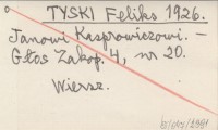 TYSKI Feliks 1926 Janowi Kasprowiczowi.