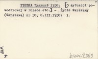 TYSZKA Zygmunt 1958 [O sytuacji powodziowej w Polsce etc.].