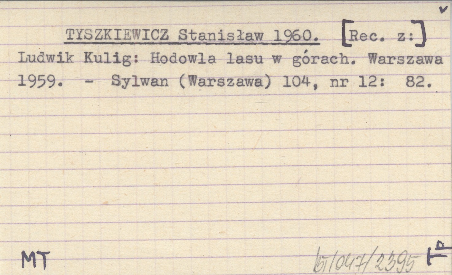 TYSZKIEWICZ Stanisław 1960 Ludwik Kulig: Hodowla lasu w górach. Warszawa 1959.