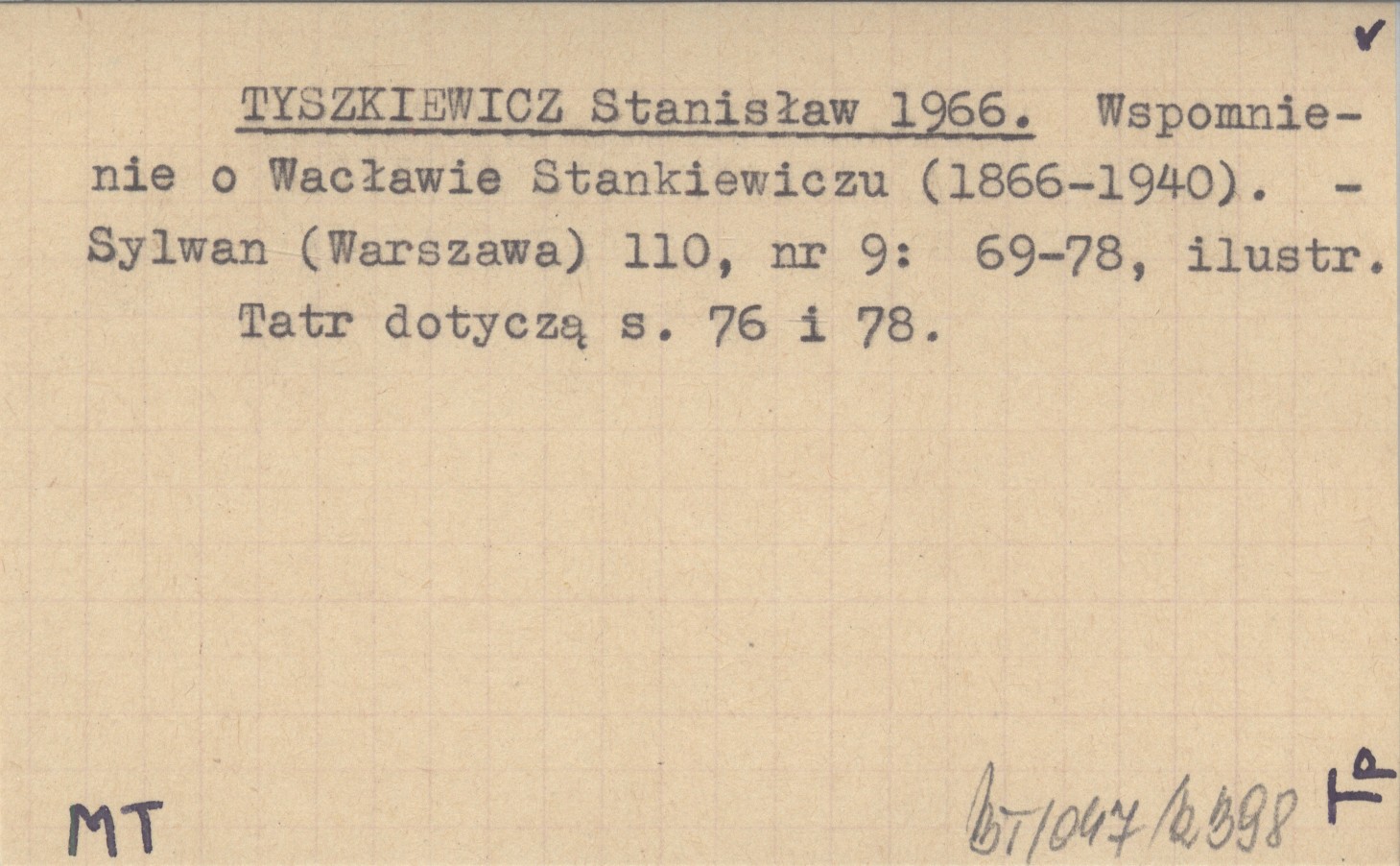 TYSZKIEWICZ Stanisław 1966 Wspomnienie o Wacławie Stankiewiczu (1866-1940).