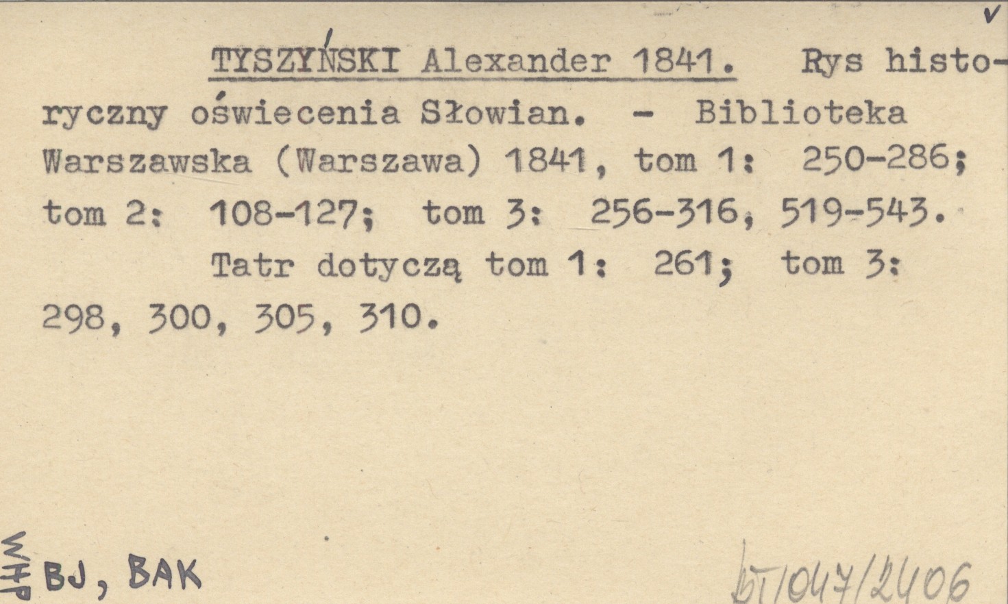 TYSZYŃSKI Alexander 1841 Rys historyczny oświecenia Słowian.