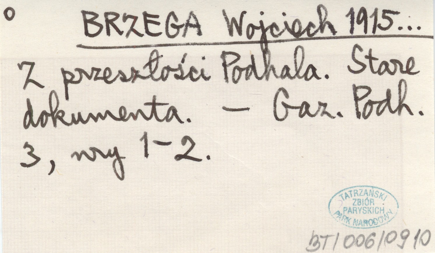 BRZEGA Wojciech 1915... Z przeszłości Podhala. Stare dokumenta.