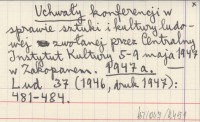 Uchwały konferencji zwołanej przez Centralny Instytut Kultury w Zakopanem 5-9 maja 1947 r., dotyczące sprawy muzeów i ochrony zabytków kultury ludowej. 1947