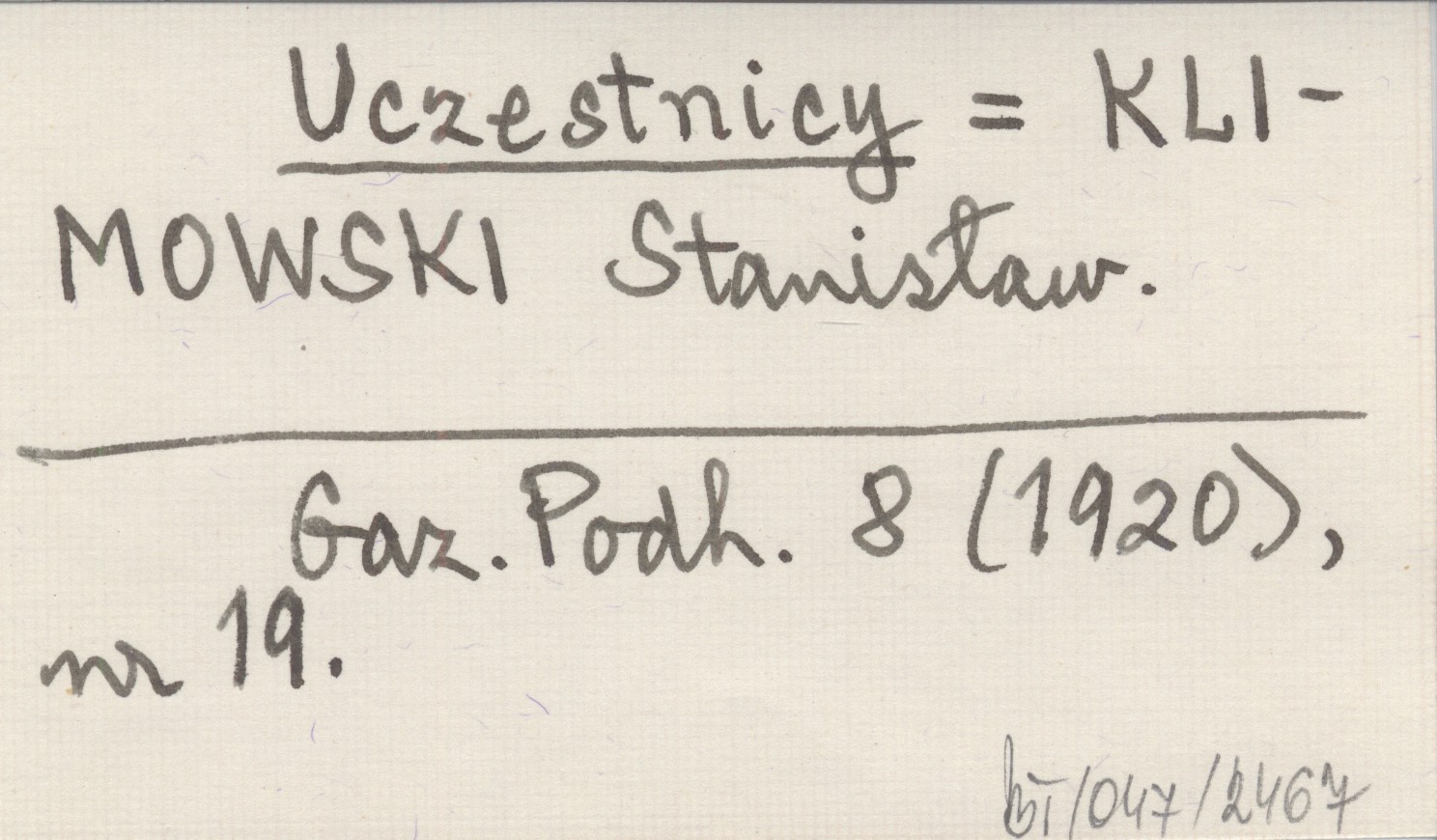 Uczestnicy KLIMOWSKI Stanisław Gazeta Podhalańska 8 (1920), nr 19.
