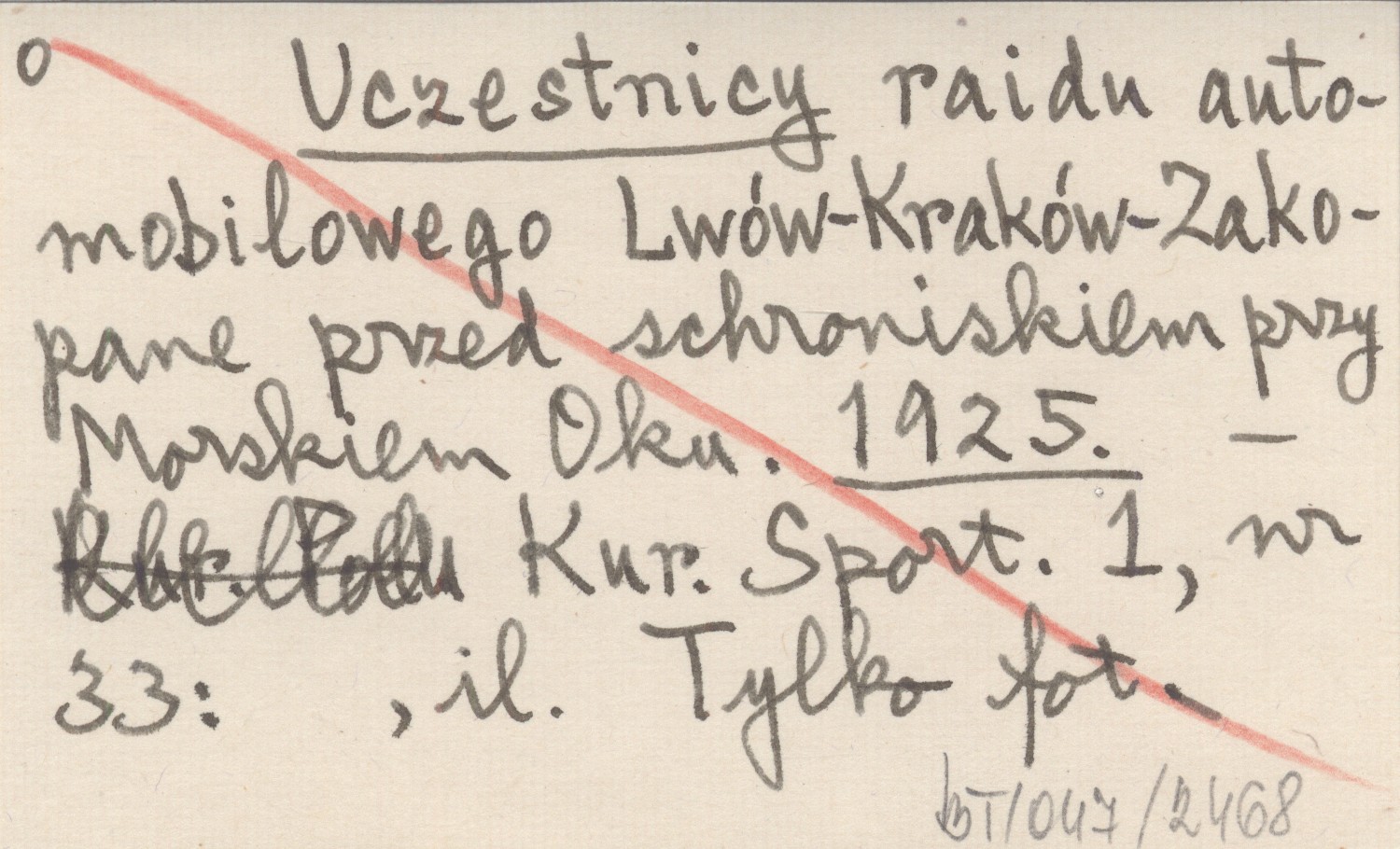Uczestnicy raidu automobilowego Lwów-Kraków-Zakopane przed schroniskiem przy Morskiem Oku. 1925