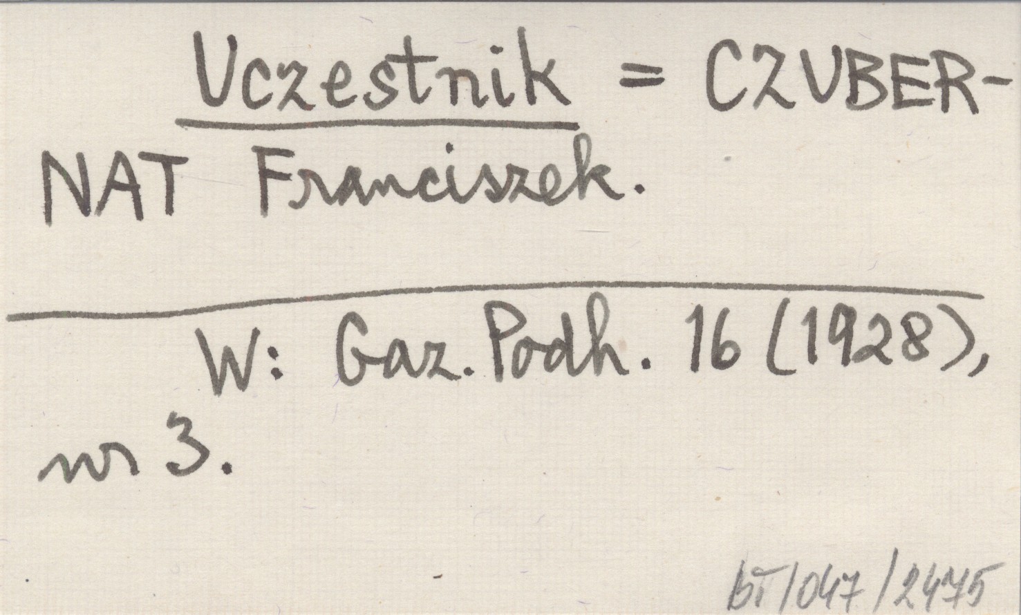 Uczestnik CZUBERNAT Franciszek Gazeta Podhalańska 16 (1928), nr 3.