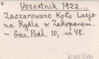 Uczestnik 1922... Zaczarowane Koło Lucjana Rydla w Zakopanem.