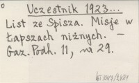 Uczestnik 1923... List ze Spisza. Misje w Łapszach niżnych.
