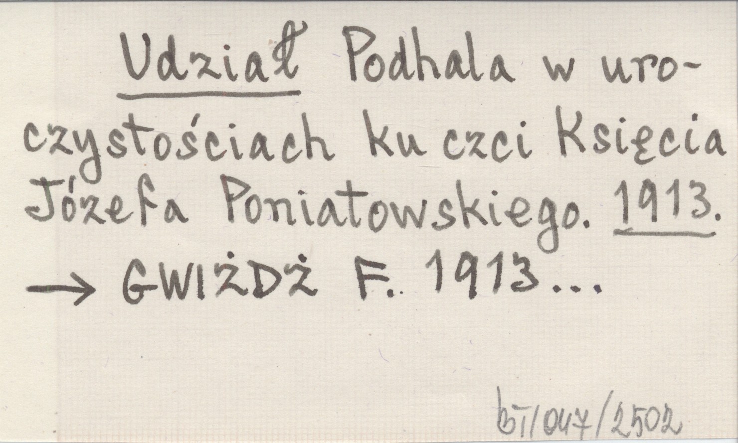 Udział Podhala w uroczystościach ku czci Księcia Józefa Poniatowskiego. 1913