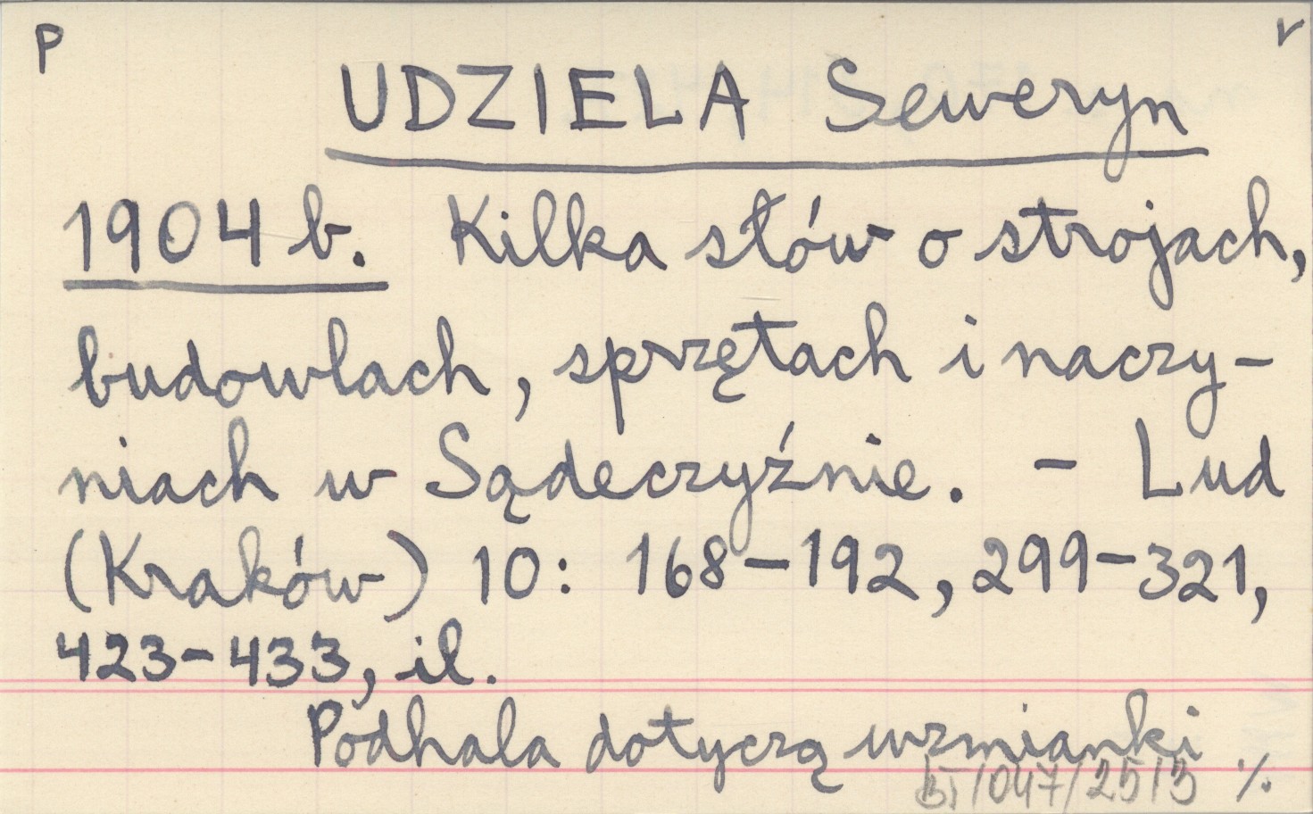 UDZIELA Seweryn 1904 b Kilka słów o strojach, budowlach, sprzętach i naczyniach w Sądeczyźnie.