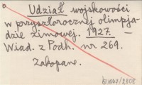 Udział wojskowości w przyszłorocznej olimpjadzie zimowej. 1927
