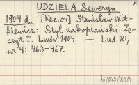 UDZIELA Seweryn 1904 c Muzeum Etnograficzne w Krakowie.
