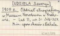 [UDZIELA Seweryn] 1905 c Oddział etnograficzny w Muzeum Narodowem w Krakowie.
