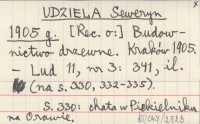 UDZIELA Seweryn 1913 [Streszczenie wyników badań nad budownictwem górali polskich].