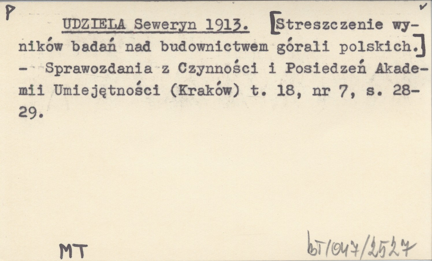 UDZIELA Seweryn 1913 [Streszczenie wyników badań nad budownictwem górali polskich].