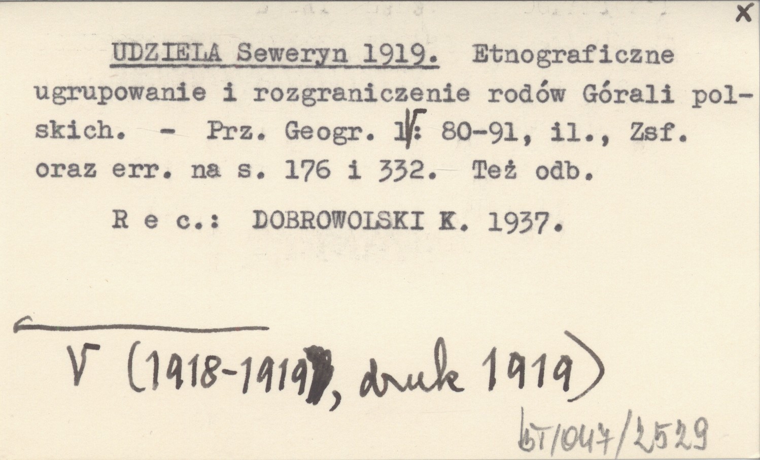 UDZIELA Seweryn 1919 Etnograficzne ugrupowanie i rozgraniczenie rodów Górali polskich.