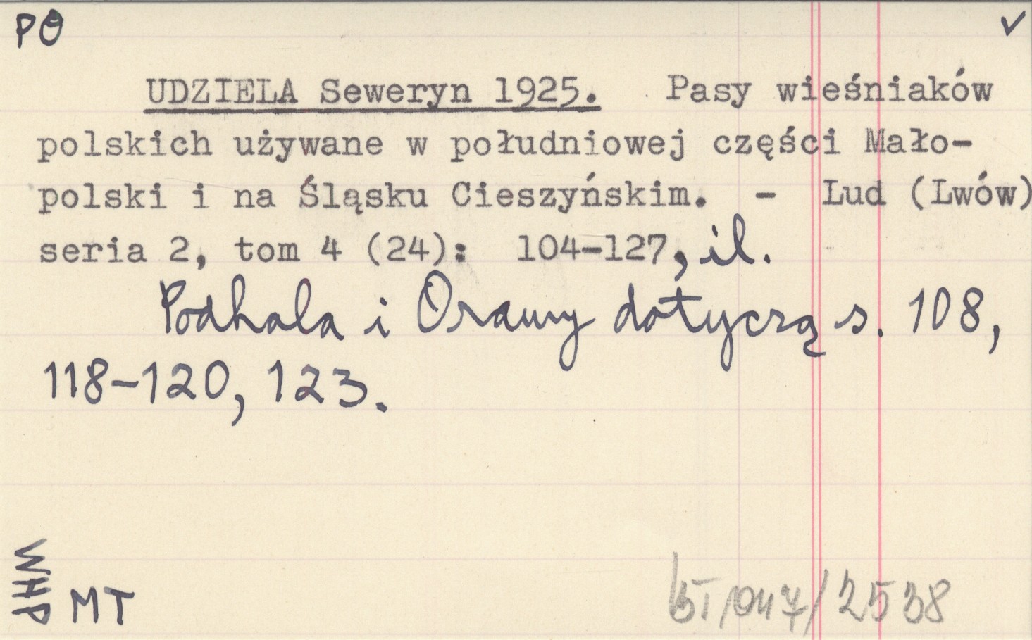 UDZIELA Seweryn 1925 Pasy wieśniaków polskich używane w południowej części Małopolski i na Śląsku Cieszyńskim.