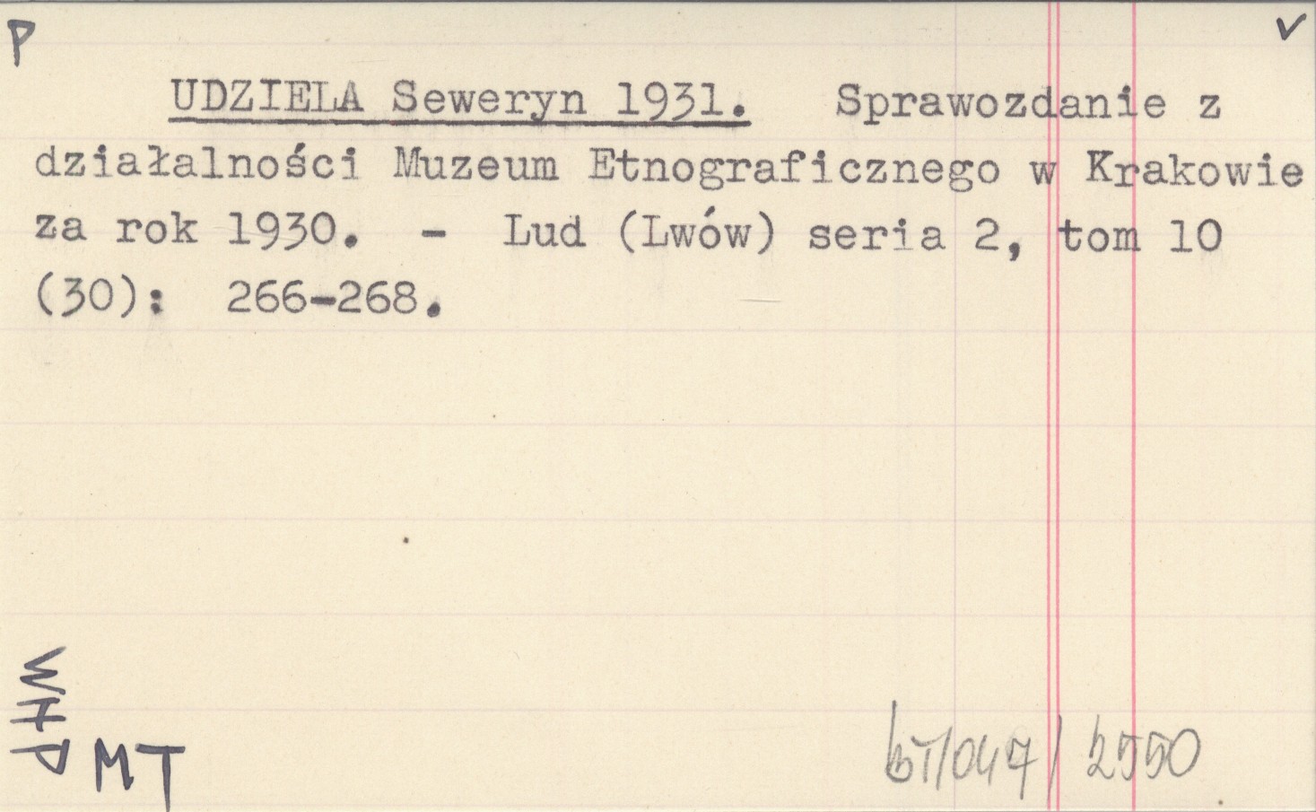 UDZIELA Seweryn 1931 Sprawozdanie z działalności Muzeum Etnograficznego w Krakowie za rok 1930.
