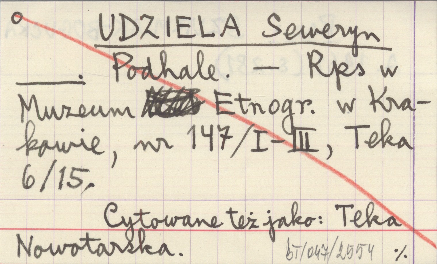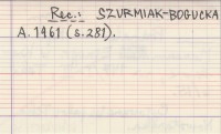 , Rps w Muzeum Etnogr. w Krakowie, nr 147/I-III, Teka 6/15. Cytowane też jako: Teka Nowotarska. REC: SZURMIAK-BOGUCKA A. 1961 (s. 281)